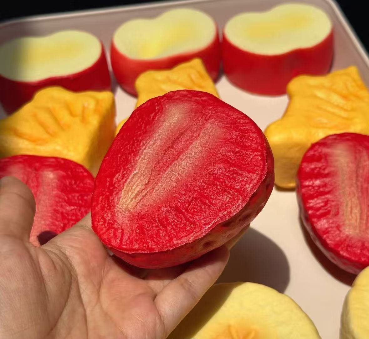Experience the ultimate stress relief with our lifelike fruit-shaped squishy toys, featuring apples and pineapples crafted with vibrant colors and stunning, realistic details. Each soft, squeezable toy is designed to provide a deeply satisfying tactile sensation, making them perfect for stress relief, sensory play, or simply brightening your day. Suitable for both kids and adults, these visually captivating toys come in rich reds and sunny yellows, measuring approximately 3-4 inches each—ideal for single-handed squeezing. Elevate your mood, enhance focus, and add a playful touch to your desk, classroom, or home.